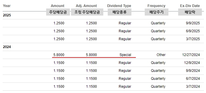 * 배당 지급일 : 9/25/2025