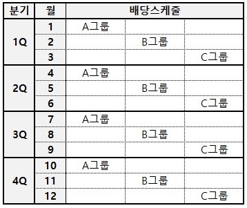 ▷ 그룹별 배당 일정표