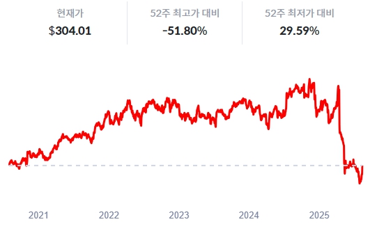 (이미지: 유나이티드헬스케어 주가 추이 / 자료: 스탁 투나잇)