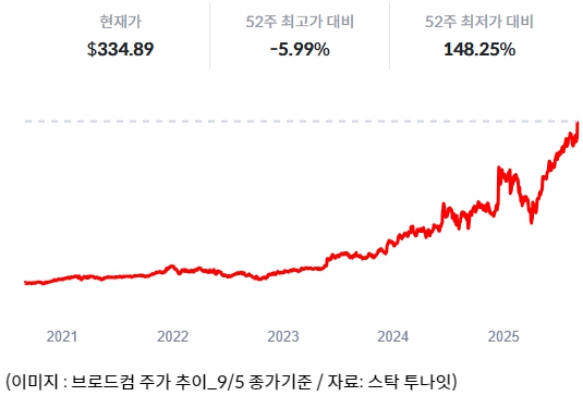 브로드컴 목표가에 대한 상향 조정도 이어졌다. 캔터 피츠제럴드와 번스타인(Bernstein)이 브로드컴의 목표가를 400달러로 상향 조정했고, 모건 스탠리는 382달러, 씨티그룹은 350달러로 상향 조정했다. 금요일 종가 기준 브로드컴의 주가는 334.89달러이다.