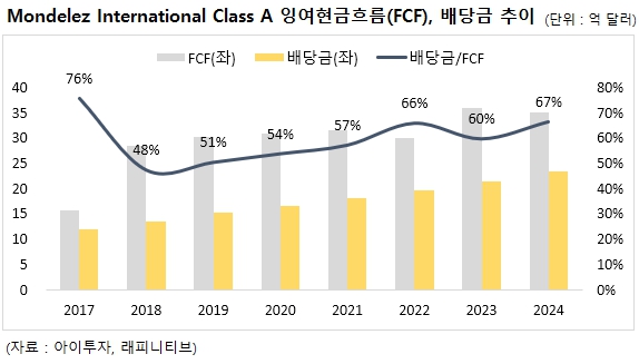 안정적인 사업 구조 덕분에 꾸준한 잉여현금흐름을 창출하고 있으며, 지난해 잉여현금흐름 대비 배당금 지급 비율은 67%로, 안정적인 배당 여력도 유지하고 있습니다.