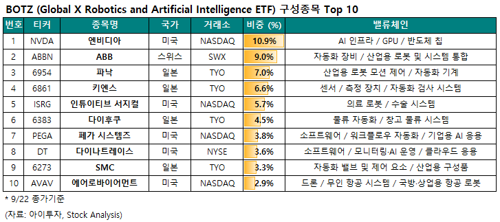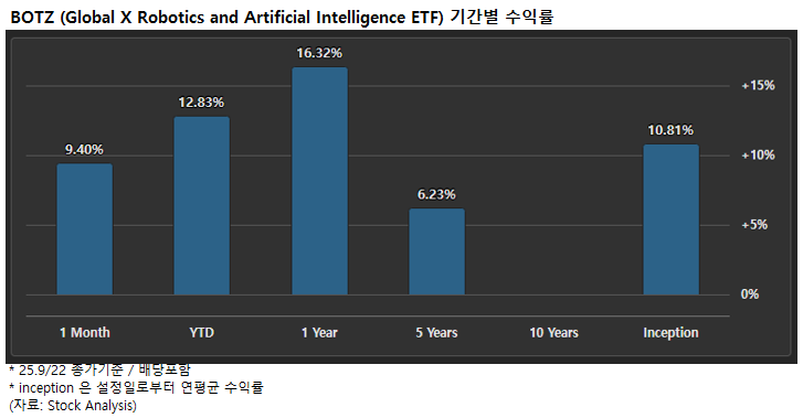 1. BOTZ - Global X Robotics and Artificial Intelligence ETF (25.9/22 기준)