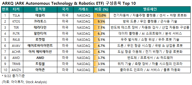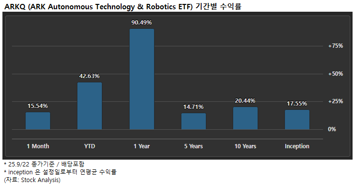 2. ARKQ - ARK Autonomous Technology & Robotics ETF (25.9/22 기준)