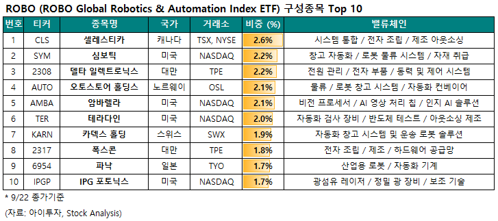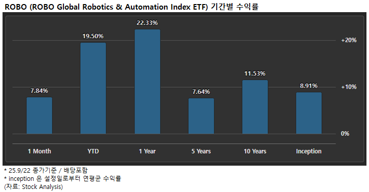 3. ROBO - ROBO Global Robotics and Automation Index ETF (25.9/22 기준)