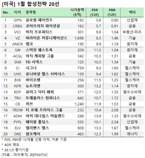 2026년 출발! 1월 합성전략 저평가주 TOP 20