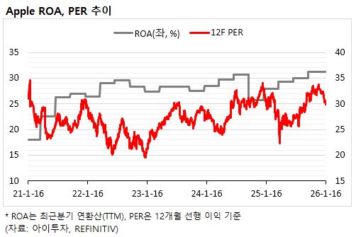 회사는 하드웨어 판매를 기반으로 앱스토어, 애플뮤직, 아이클라우드 등 서비스 부문의 비중을 지속적으로 확대하고 있습니다. 안정적인 현금흐름과 높은 수익성을 바탕으로 자사주 매입과 배당을 병행하며, AI·헬스케어·공간 컴퓨팅 등 신규 성장 영역에서도 장기 경쟁력을 보유한 대표적인 빅테크 기업으로 평가됩니다.
