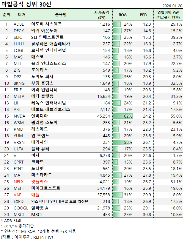 2026년 1월 마법공식 30선