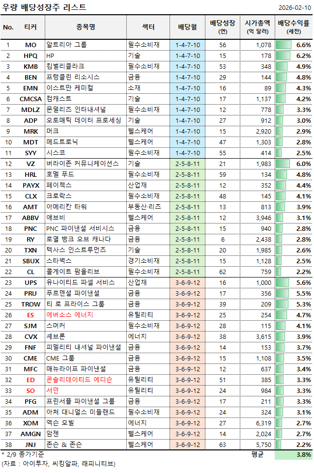 ※ 미국 우량 배당성장주 리스트 업데이트 (26.2/10)